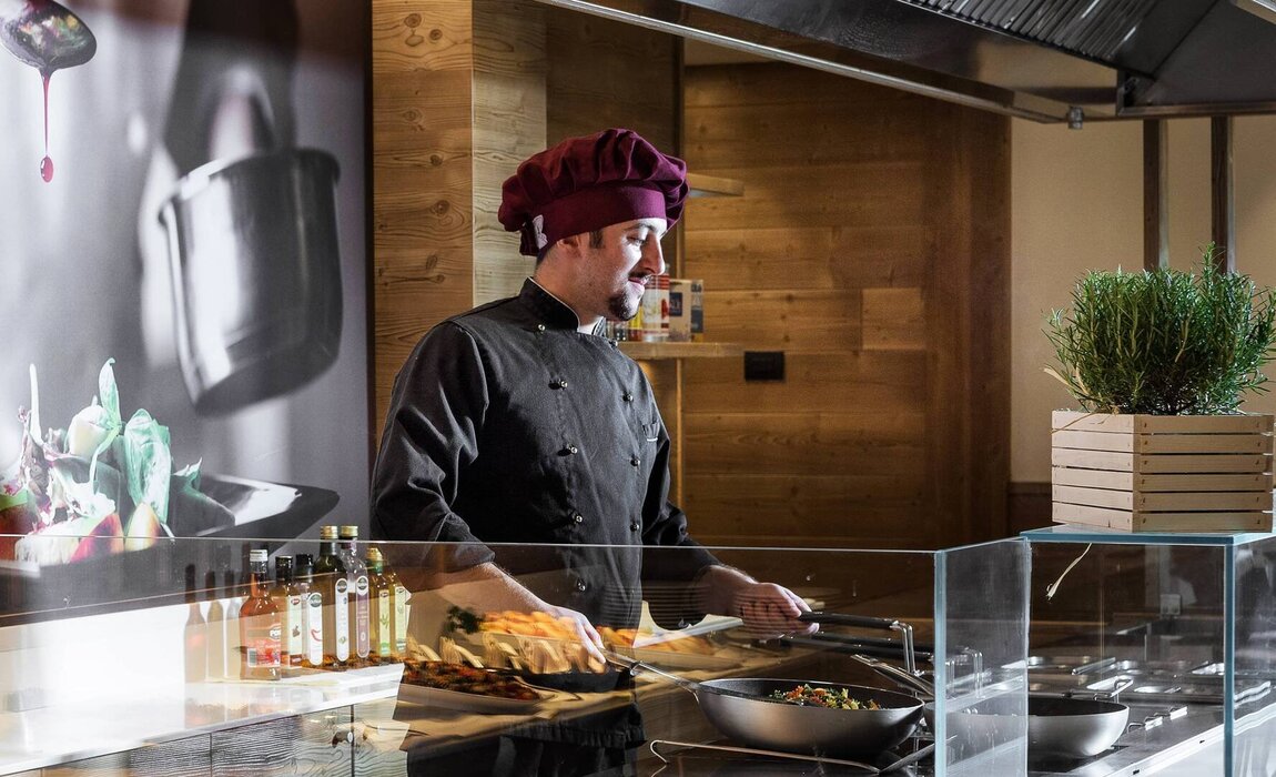 During the show cooking, you can watch our chef Michele live as he prepares delicious dishes with high-quality, predominantly regional ingredients. There are varied, age-appropriate menus for children - and those who wish can have lunch or dinner together with our entertainers in the cheerful children's restaurant. - From 16:00 to 17:00
