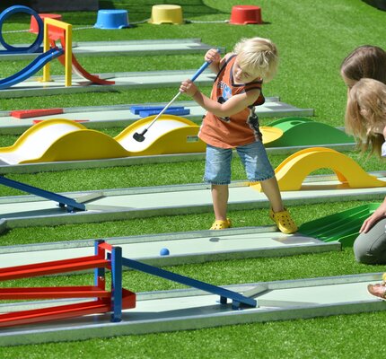 Unsere neue hoteleigene Minigolf-Anlage sorgt für kurzweilige Unterhaltung für alle Altersgruppen. Die Anlage geht mit Sommer 2026 in Betrieb.