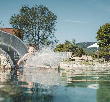Ferienwelt Kesselgrub prides itself on offering guests not only comfortable accommodation, but also a unique experience of nature. From the magnificent indoor pool with outdoor swimming pool to an extensive garden paradisewith a private swimming lake, the connection to nature is omnipresent. Guests of all ages can find authentic nature experiences and relaxation on an area of around 5,000m². Whether on the playground, in the fragrant herb garden orin our own vegetable garden - here our guests experience the diversity of nature in a natural environment.