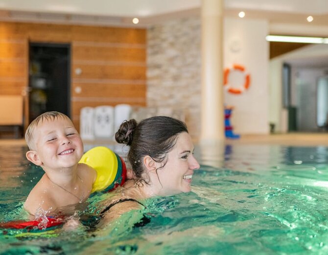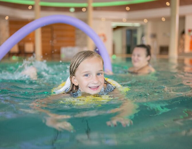 - Wellness Alm spa area with 2 saunas, steam bath and 3 relaxation areas, fitness room, 500 m² indoor pool with an outside lounging area, a pipe water slides and 2 children’s pools