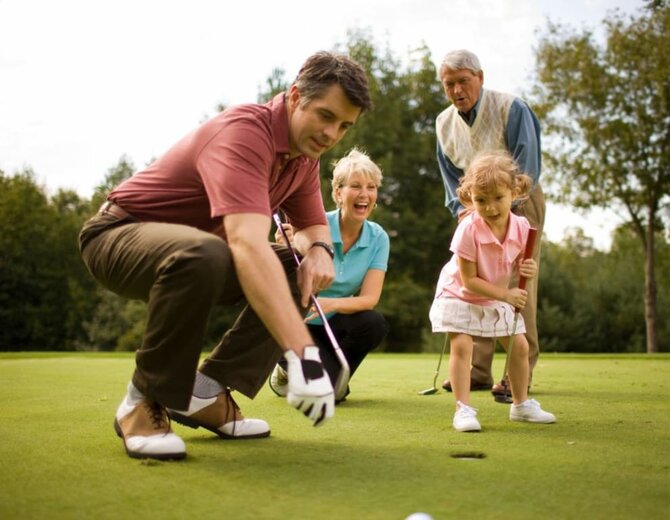 Papa hat Lust auf eine ausgiebige Golfpartie? Mama möchte das Abschlagen auf der Driving Range üben und die Kleinen bestehen auf Spielezeit im Kids Club unter ihresgleichen. Alles möglich! Während die Eltern ihrer Golfleidenschaft nachgehen, sind die Kids in bester Betreuung und toben sich beim gemeinsamen Spielen aus. Anschließend genießt die ganze Familie gemeinsame Zeit bei Family-Sport-Aktivitäten, in der Seewellness Oase oder beim Baden im Brennsee.