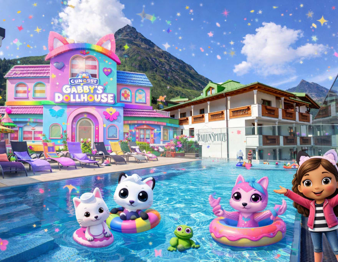 Taucht ein in eine glitzernde Fantasiewelt voller Katzenohren, Farben und Magie. Gemeinsam mit Gabby und ihren süßen Katzenfreunden verwandeln wir unser Hotel in ein kunterbuntes Dollhouse mitten in Galtür.