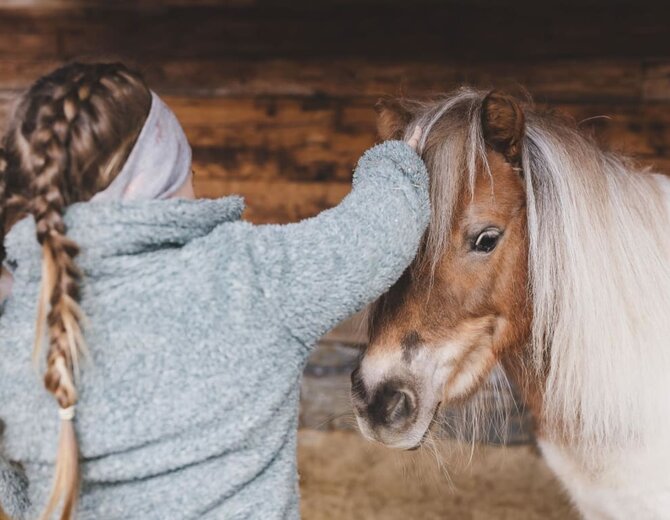 - Tägliches Ponyreiten und Familienspaziergänge mit Zwergpferden